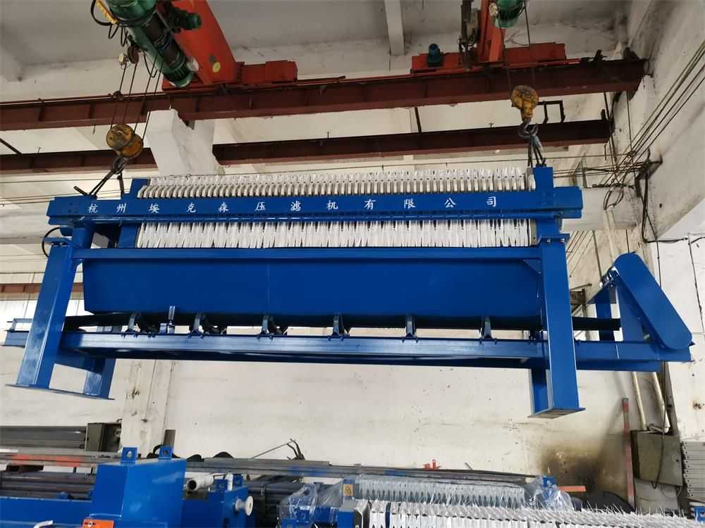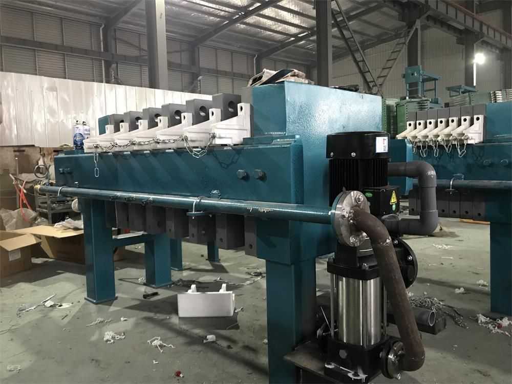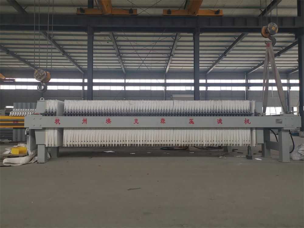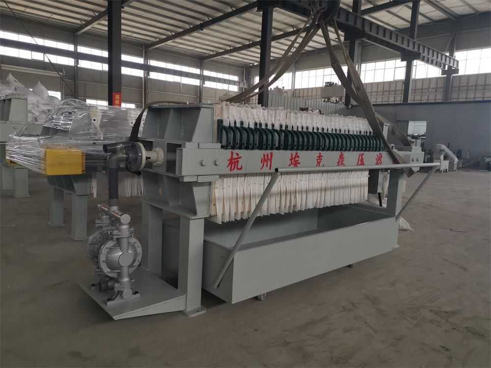 隔膜壓濾機(jī)和常規(guī)箱式壓濾機(jī)的主要區(qū)別在于,在濾板的兩側(cè)都增加了兩個(gè)彈性膜(復(fù)合橡膠膜是一個(gè)整體式膜。在操作期間,當(dāng)進(jìn)料完成時(shí),將高壓流體介質(zhì)注入膜中,并使整個(gè)膜膨脹以過濾濾餅,以進(jìn)一步使濾餅脫水,這是壓力過濾。在隔膜壓濾機(jī)運(yùn)行期間,液壓系統(tǒng)使用液壓油作為壓力載體來傳遞內(nèi)部壓力。